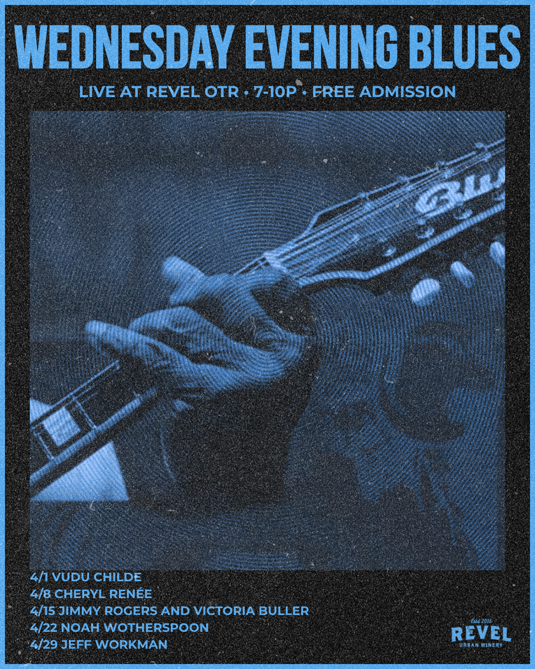 Live Blues EVERY Wednesday featuring 1/2 off Revel Wine bottles! That means you can try all of your faves for half the price!